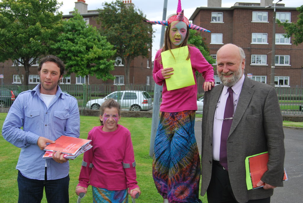 Dr. Rory Hearne, Fergus Finaly and young children from Dolphin at the Dolphin decides launch summer 2009